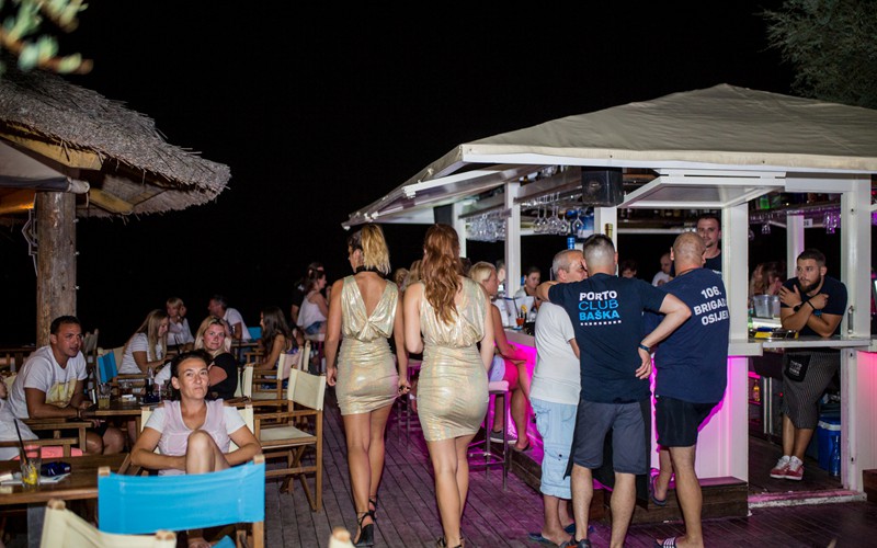 "Porto Club Baska ist eine stilvoll eingerichtete Lounge Bar am einmaligen Strand „Vela plaža“, die als eines der schönsten Strände an der Adria gilt. Der Porto Club ist ein Club, den Sie unbedingt besuchen müssen, wenn Sie in Baska sind. Ob Sie hier Ihren ersten Morgenkaffee auf der großen Terrasse mit wunderbarem Blick trinken oder ob Sie am Nachmittag auf die beliebte Afterparty kommen – die Entscheidung treffen Sie allein."